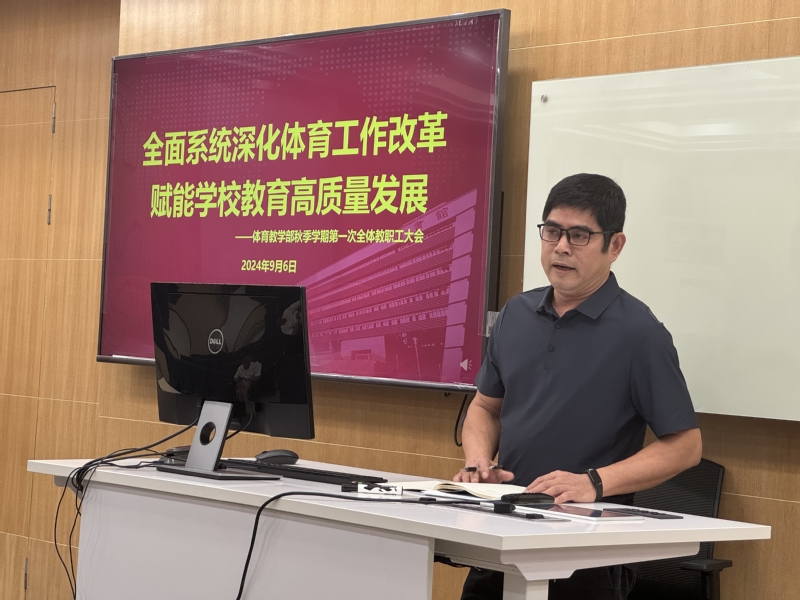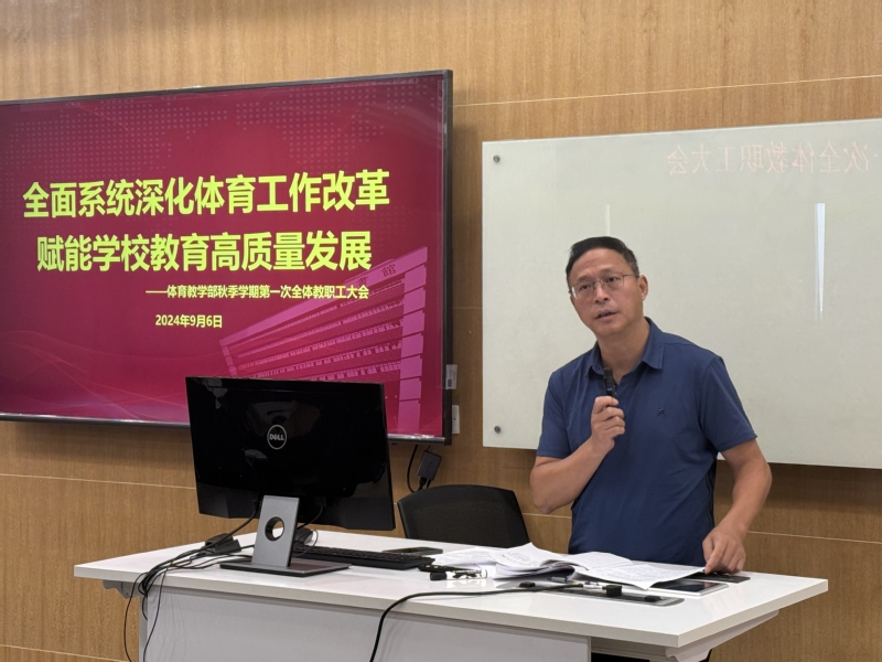 新学期伊始,为深化我校体育工作改革并确保各项任务有效实施,体育教学部于9月6日隆重召开了体育工作推进会。会议围绕“全面系统深化体育工作改革,赋能学校教育高质量发展”的核心主题展开,由体育教学部直属党支部书记郑红艳主持,全体教职工悉数参加。