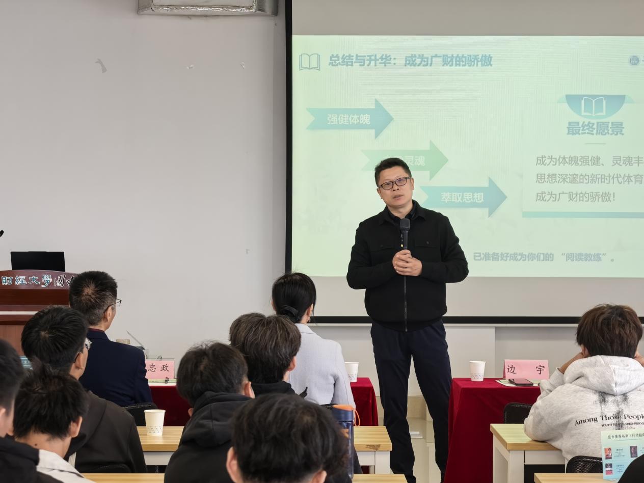 最后,在“掌握路径”部分,他将重点落在阅读上。“阅读不是立刻改变你,而是悄悄塑造你。”他建议同学们坚持每日阅读,在图书馆寻找心灵的“补给站”。他还推荐了适合体育生阅读的经典书目,鼓励学生制定属于自己的“阅读训练计划”,并通过分享深化思考,以阅读提升内在力量。