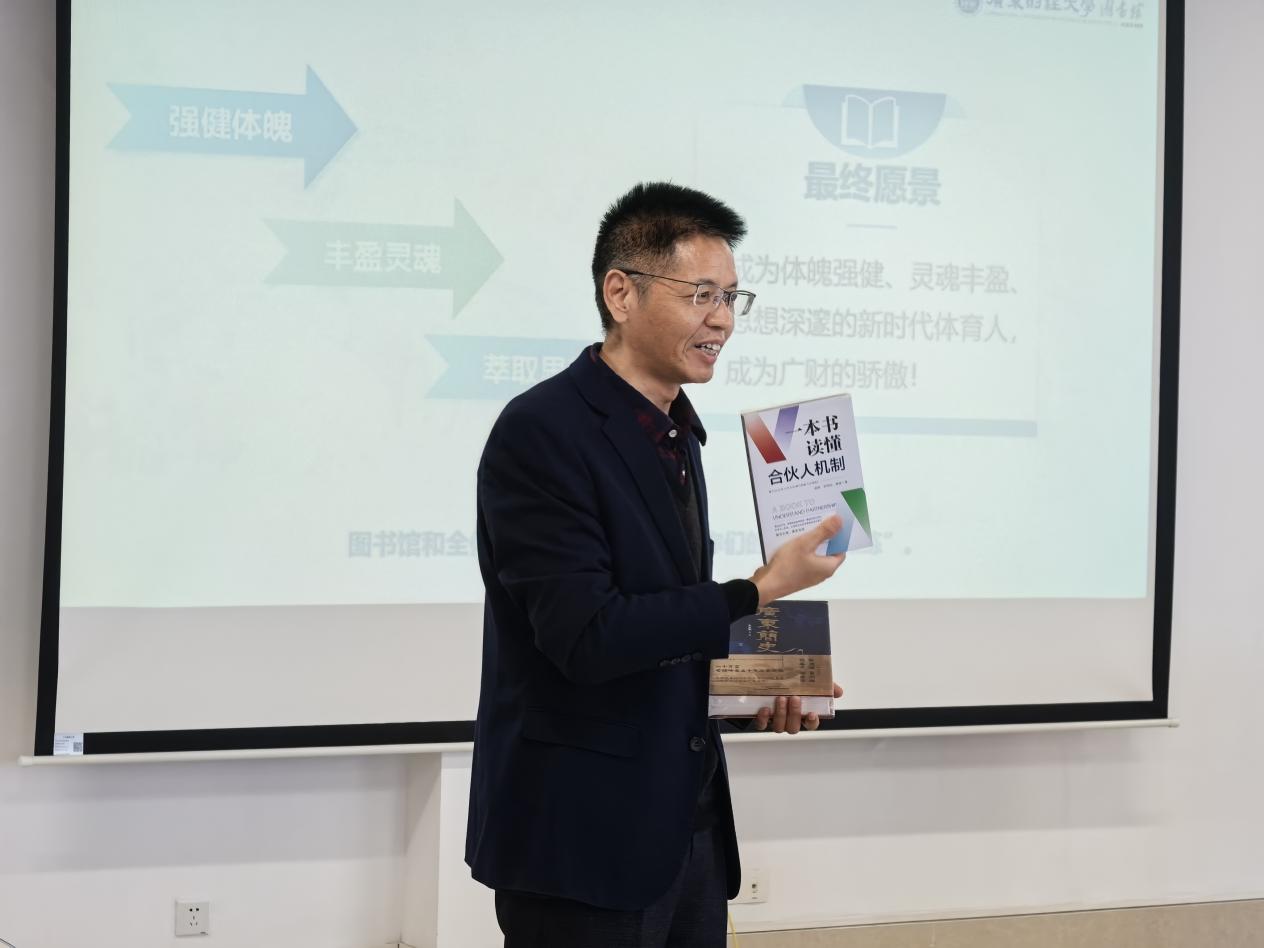 11月19日上午,体育学院组织开展的“体魄强健·阅读丰盈”书香育人主题活动在广州校区图书馆801培训室举行。本次活动由图书馆馆长王忠政担任主讲,体育学院党委书记郑田主持。体育学院院长边宇、副院长黄怀权、图书馆副馆长王喜亚、新生辅导员陈炳旭、图书馆学习中心教师及体育学院全体新生共同参加。